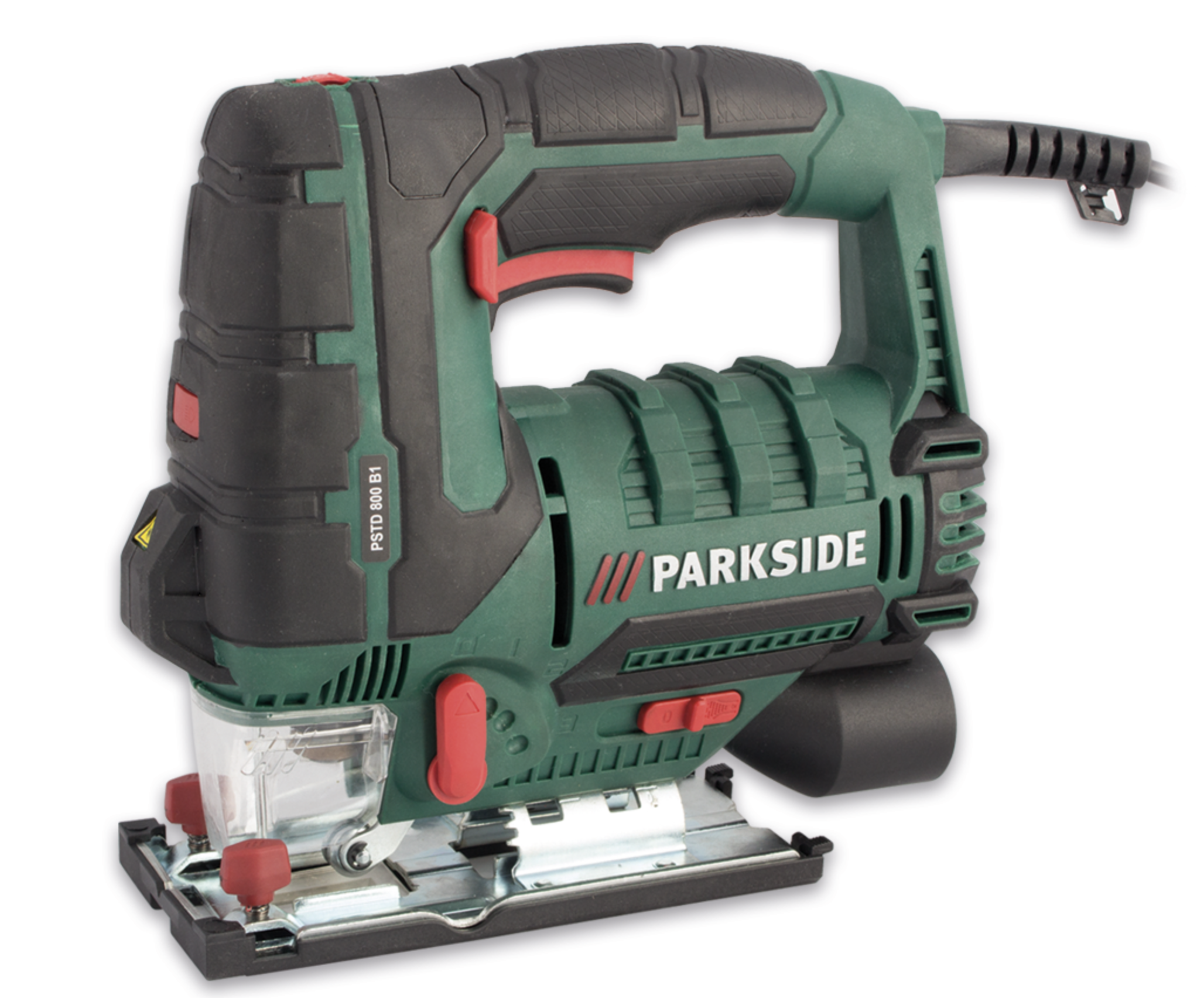 PARKSIDE® Scie sauteuse à mouvement pendulaire PSTD 800 C3, 800 W – Puissance de raccordement : 800 W Vitesse : 0–3100 min tpm Longueur de course : 22 mm Profondeur de coupe max. : maximum 80 mm dans le bois / 8 mm dans le métal Angle de coupe oblique droite/gauche : 0° / 15° / 30° / 45°